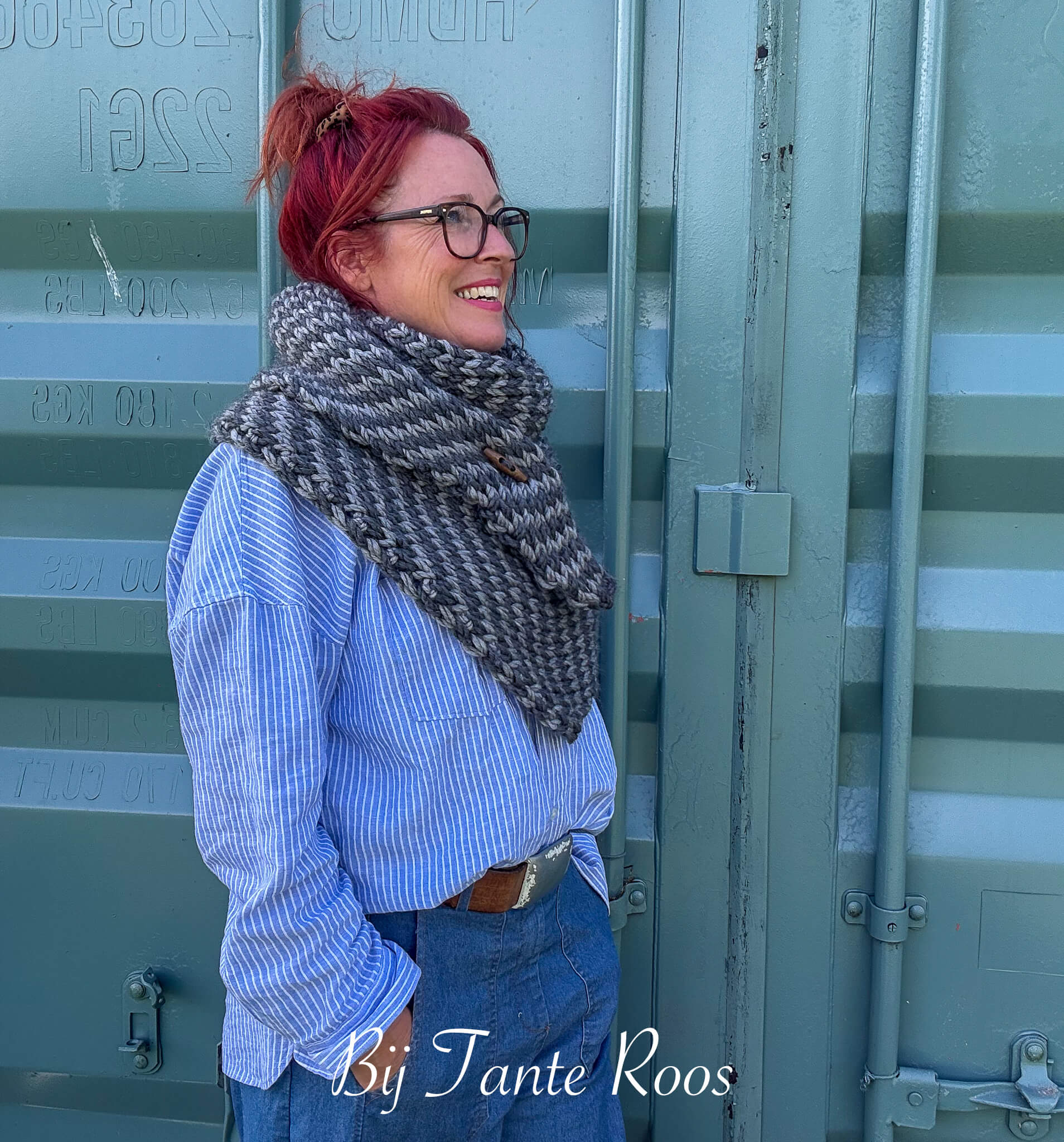 De Sjaal Rosa is een compacte, veelzijdige sjaal gehaakt met het zachte Scheepjes Peru. Door de houten knebelknoop draag je ’m op allerlei manieren: als col, schuin over je jas, of nonchalant bij elkaar gepakt. Tunisch haken met een duidelijke uitlegvideo erbij—ook prima te doen als je nog niet veel Tunische ervaring hebt.