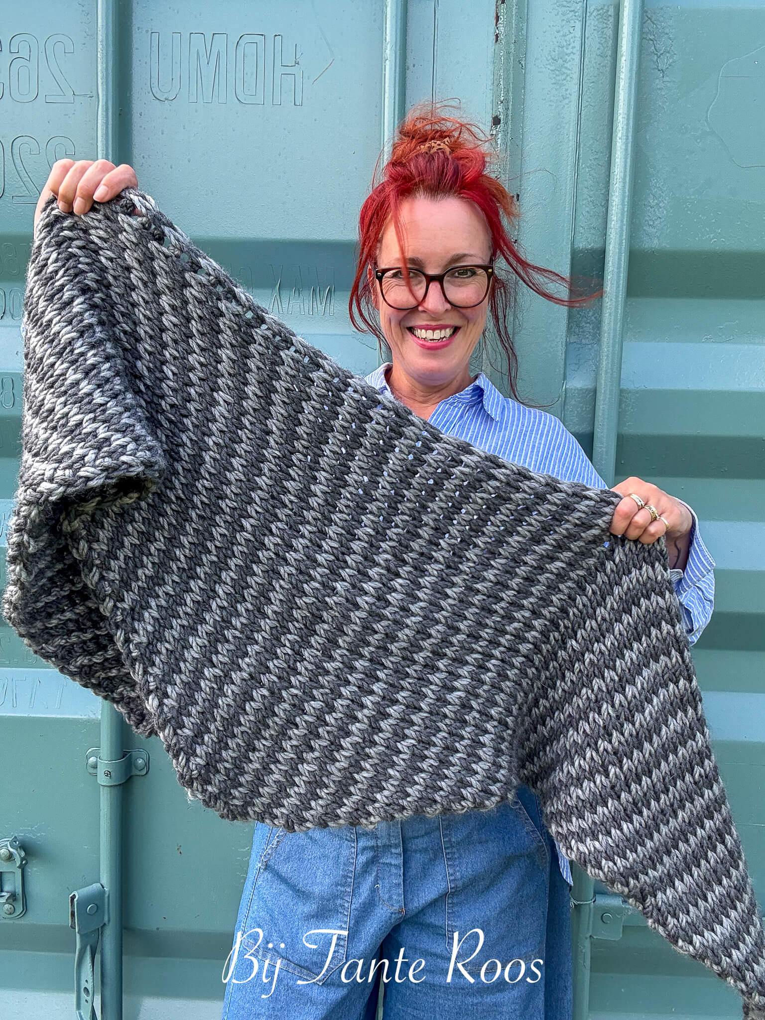 Haak losjes/soepel. Haak je strak, dan wordt je sjaal kleiner. Let op: 15 mm is de grootste maatnaald voor dit project.