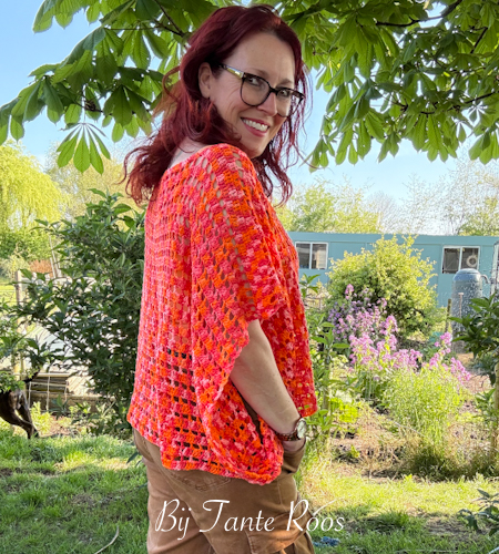 Shirt Reina is een heerlijk zomers haakproject – luchtig, soepel en supercomfortabel. Perfect voor warme dagen! Het patroon is eenvoudig en dus geschikt voor beginners, ook als je nog nooit kleding hebt gehaakt.