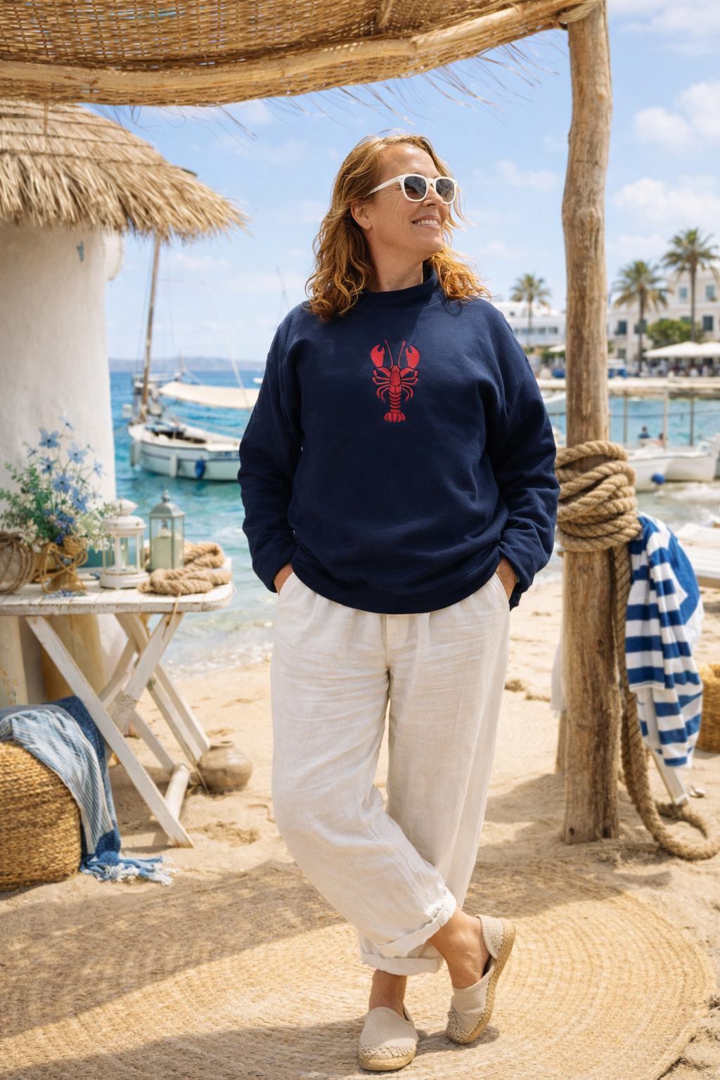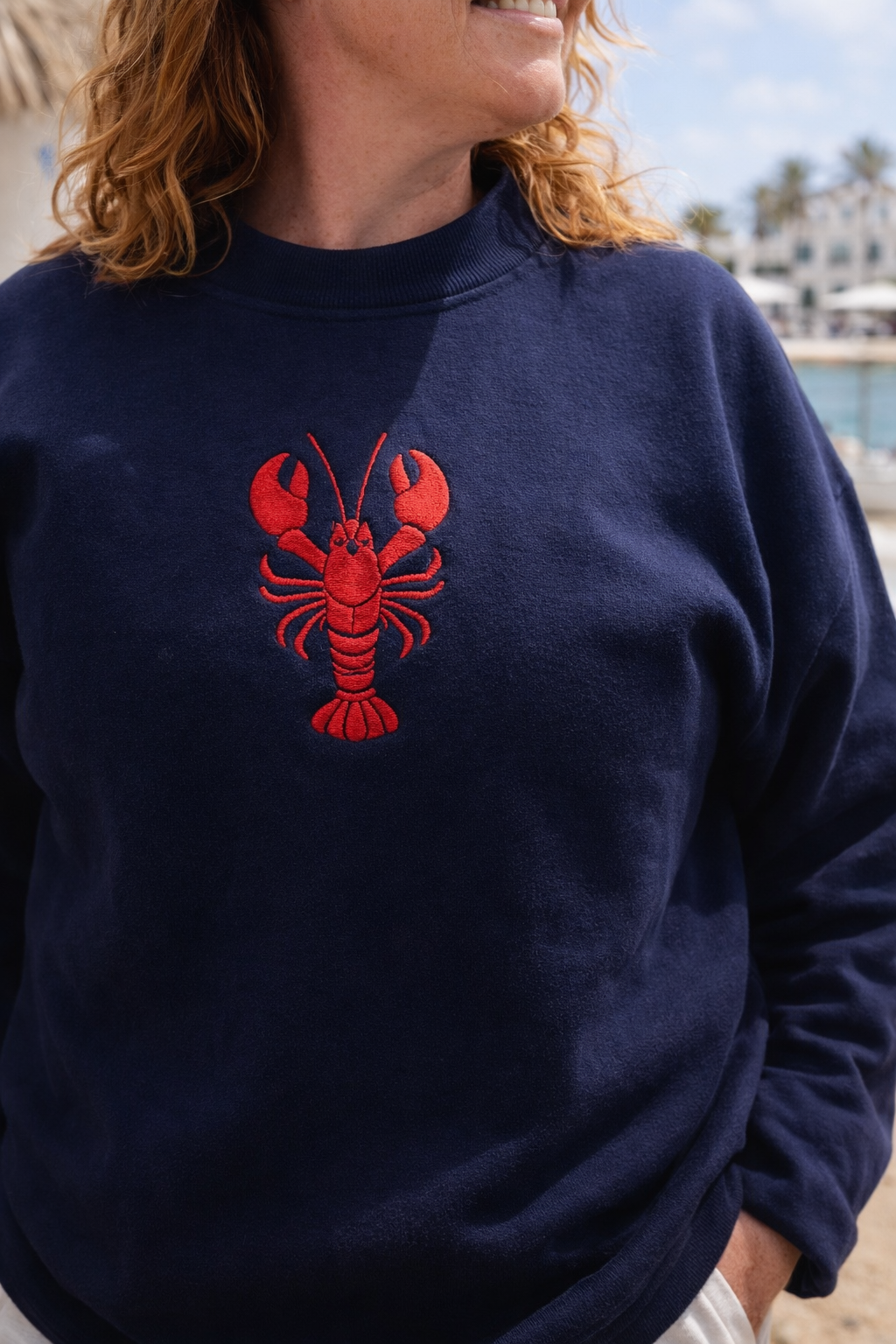 Deze donkerblauwe crewneck met een rode kreeft op de borst is stoer, speels en net even anders. Zo’n item dat je makkelijk pakt en waar je je meteen goed in voelt.