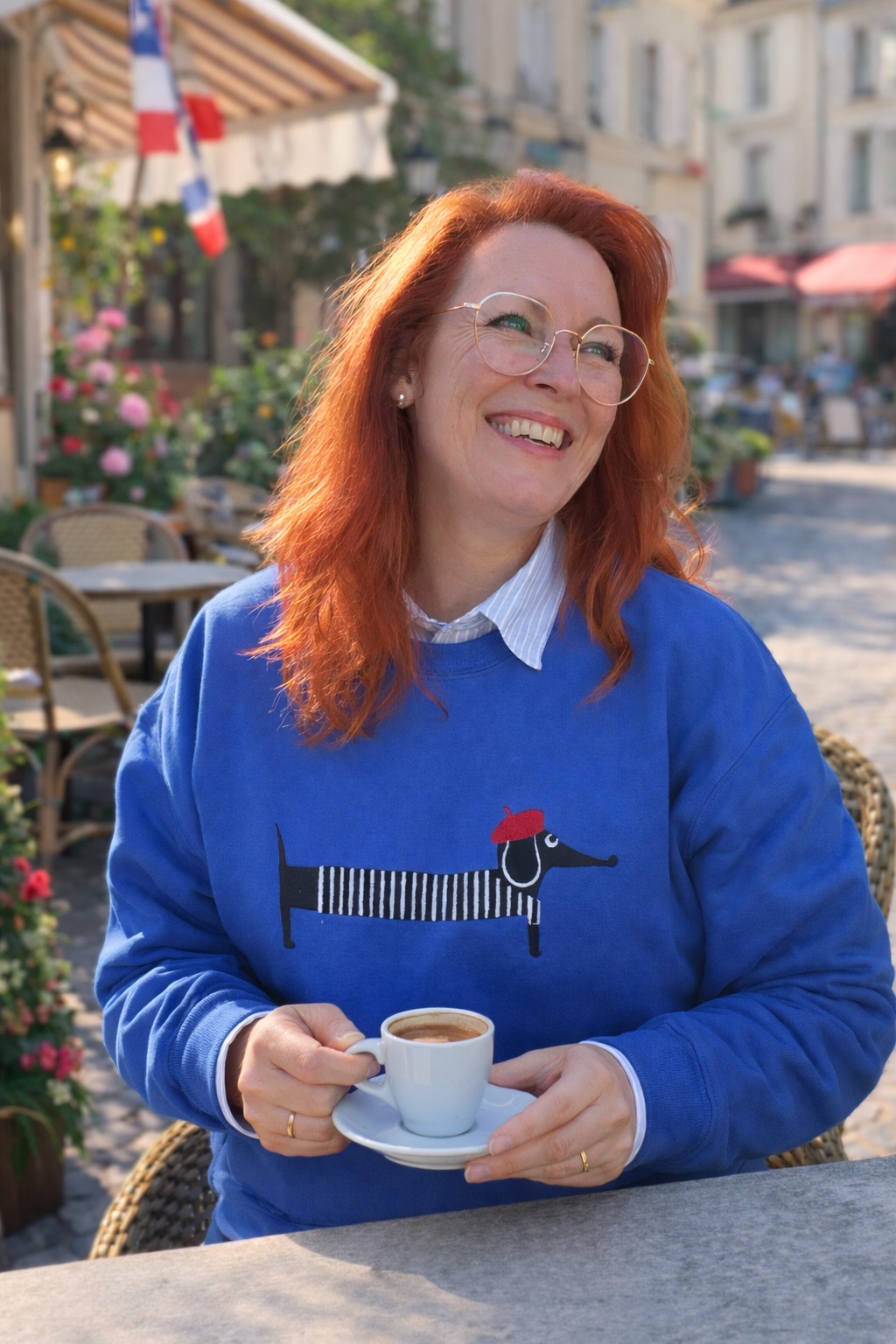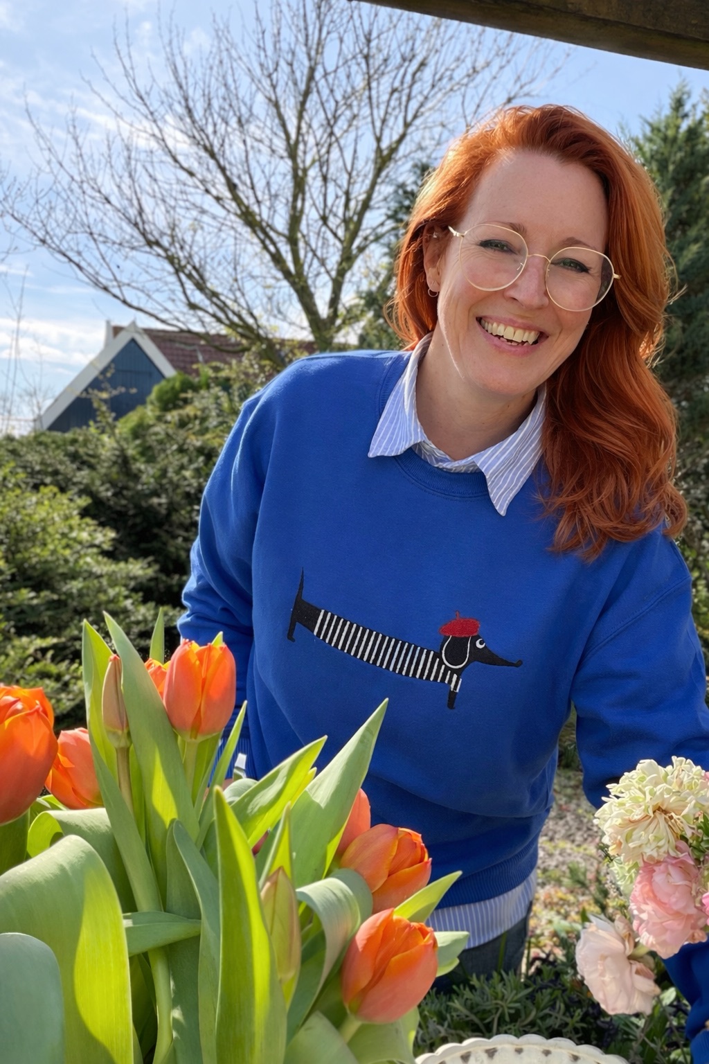 De Bonjour Saucisse sweater brengt precies dat gevoel — licht, speels en een tikje eigenwijs.