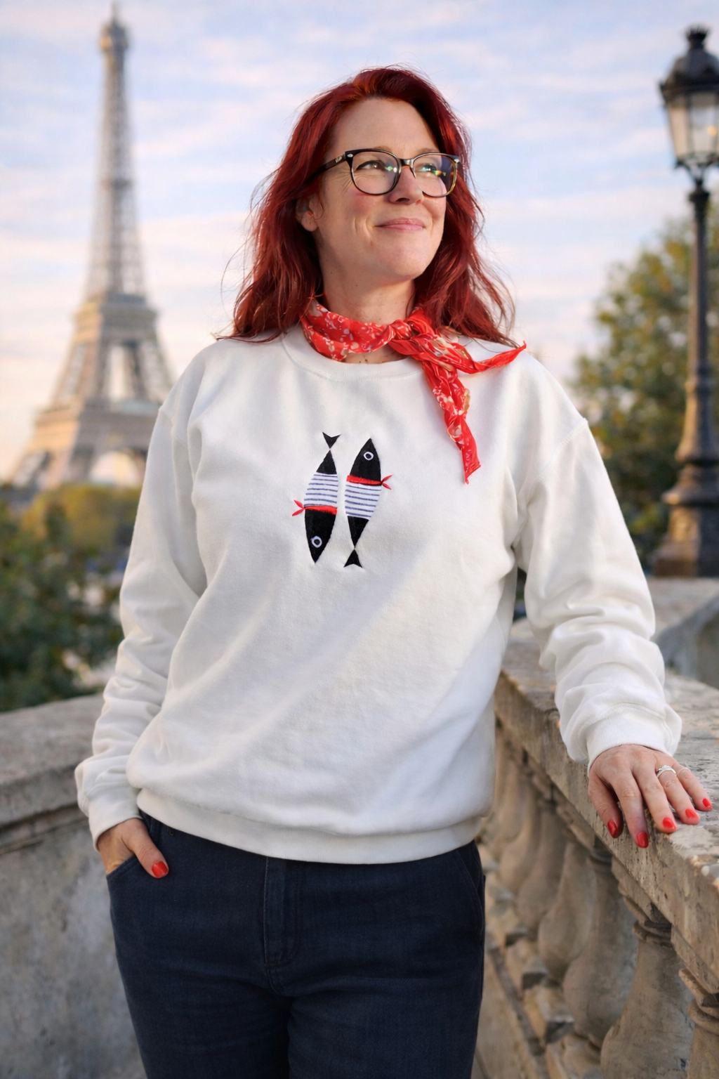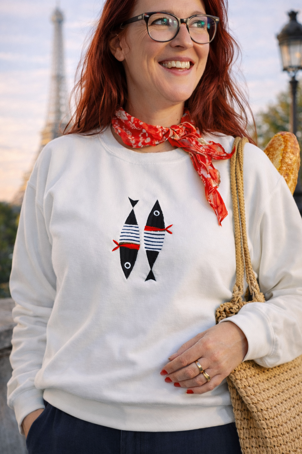Sweater Sardines à Paris is stijlvol, eigenwijs en net even anders, met een verfijnd borduursel dat rustig opvalt zonder te overheersen.