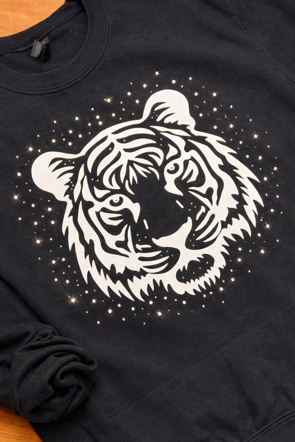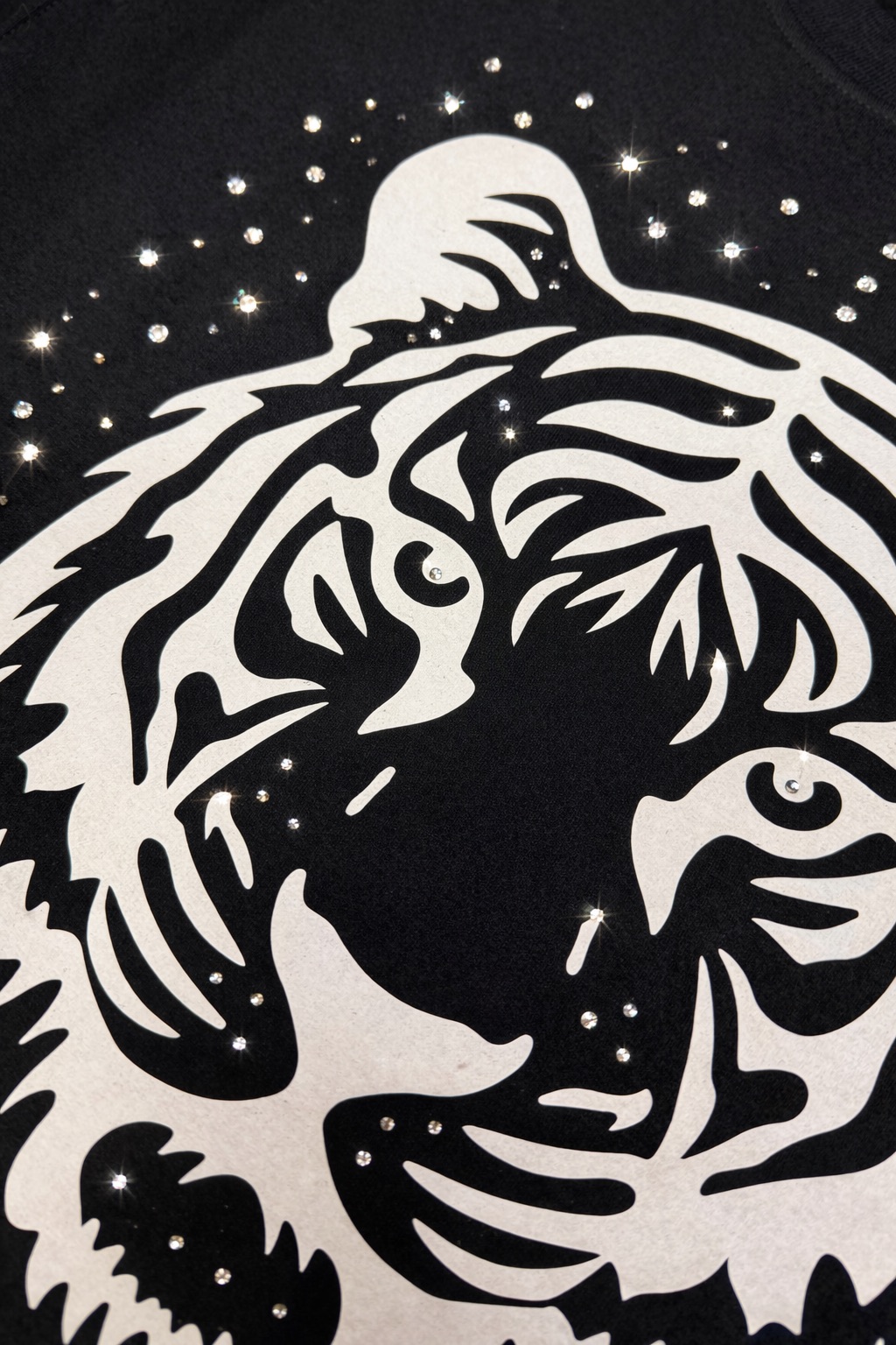 Zwarte sweater met witte tijger & subtiele strass details 🐯✨