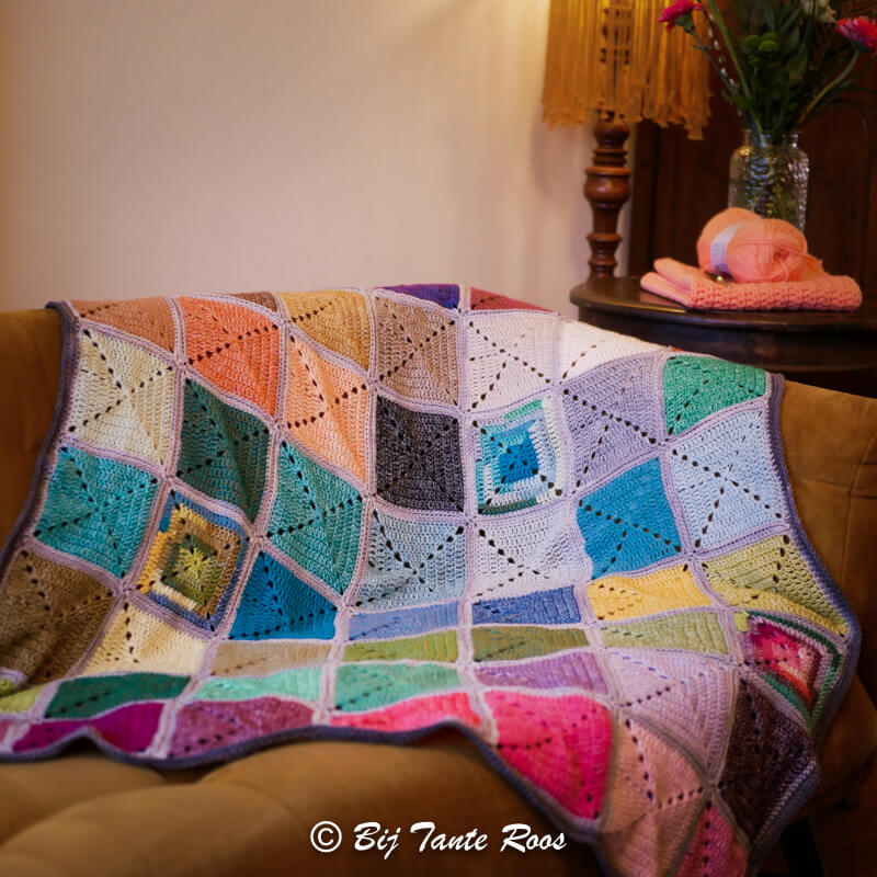 Maak van het mooie Scheepjes StoneWashed-RiverWashed Colour Pack een leuke retro woondeken. Je haakt het hele pakket op en zo krijg je deze heerlijke vrolijke Granny Square deken. Deze deken fleurt je hele woonkamer op.
