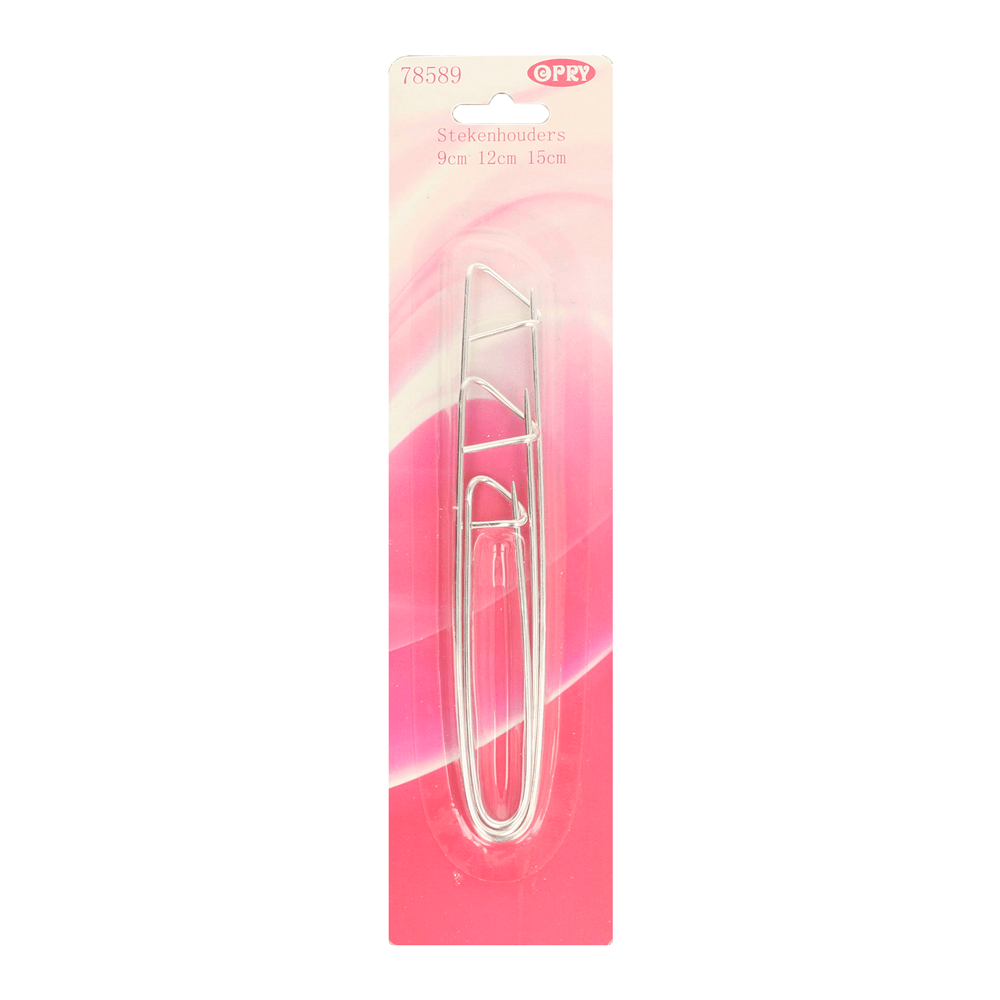 Deze stekenhouders van Opry zijn gemaakt van metaal en kunnen gebruikt worden om tijdens het breien de steken vast te houden en vervolgens op een ander moment verder te breien. Omdat deze stekenhouders afsluitbaar zijn, ben je er zeker van dat de steken veilig bij elkaar gehouden worden. Elke verpakking bevat 3 stekenhouders in de maten 9, 12 en 15cm